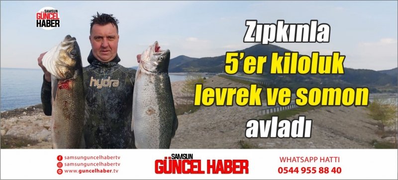 Karadeniz'de zıpkınla avlanan 5’er kiloluk levrek ve somon yüz güldürdü.