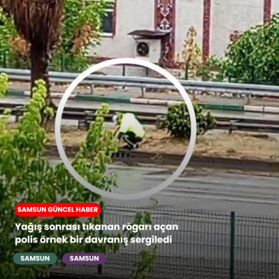 Yağış sonrası tıkanan rögarı açan polis örnek bir davranış sergiledi